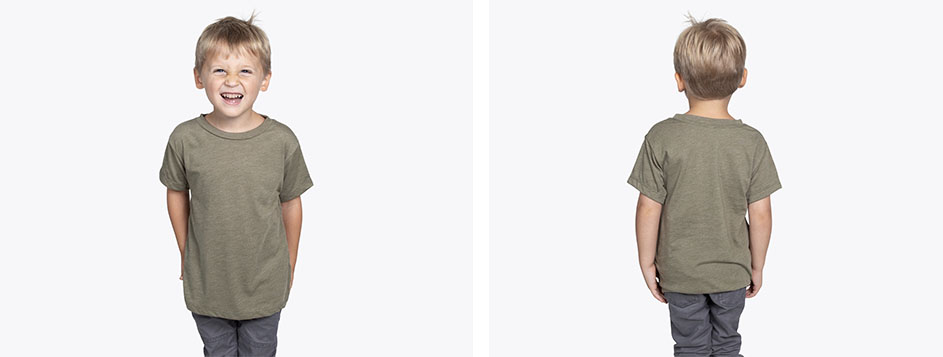 This toddler tee features side-seaming and a comfortable crew neck. It’s made with a blend of cotton, rayon, and polyester- meaning it’s SUPER soft. Available in sizes 2T-5T.