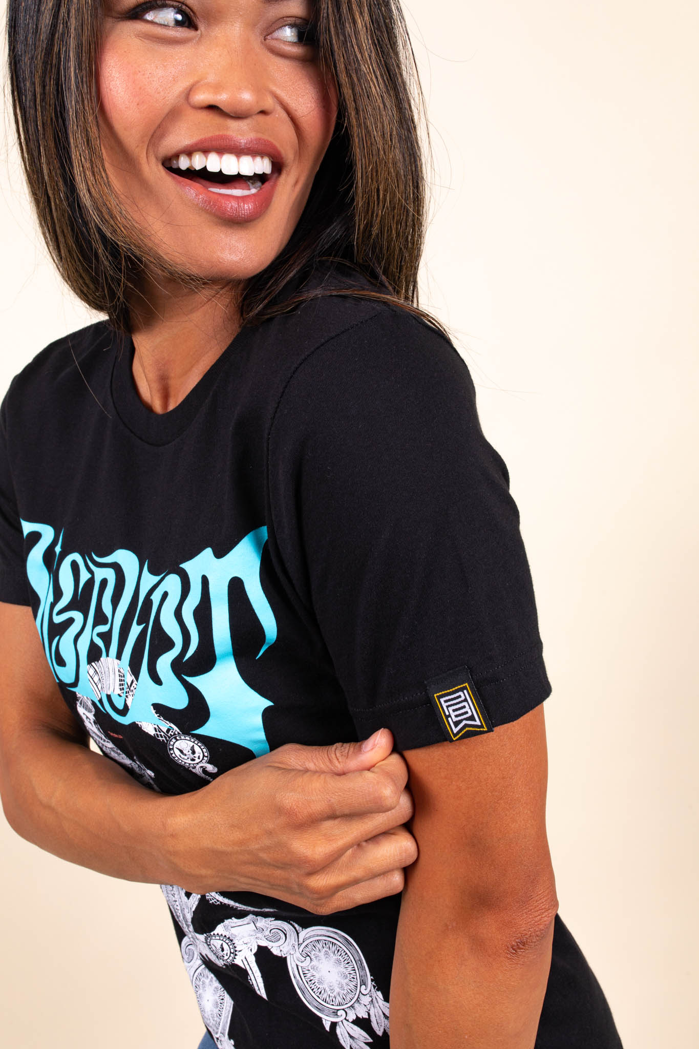 The neck of the shirt can also be relabeled by removing the stock manufacturing label and replacing it with a custom woven label, which is typically placed “under the tape,” though it can be placed “over the tape” if you prefer. "Under the tape" simply means under the seam, "over the tape" is sewn over the seam.