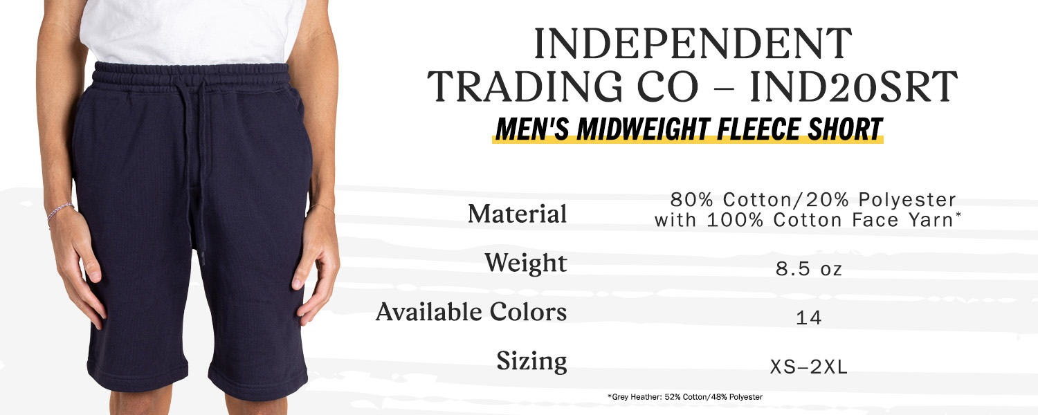 It all depends on your style preferences at the end of the day. We can tell you that the Independent Trading Co. IND20SRT and Bella + Canvas 3724 are great custom sweat shorts.